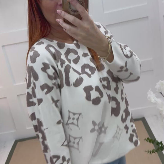 Alice: Brown & white leopard print top. One size: 12-20