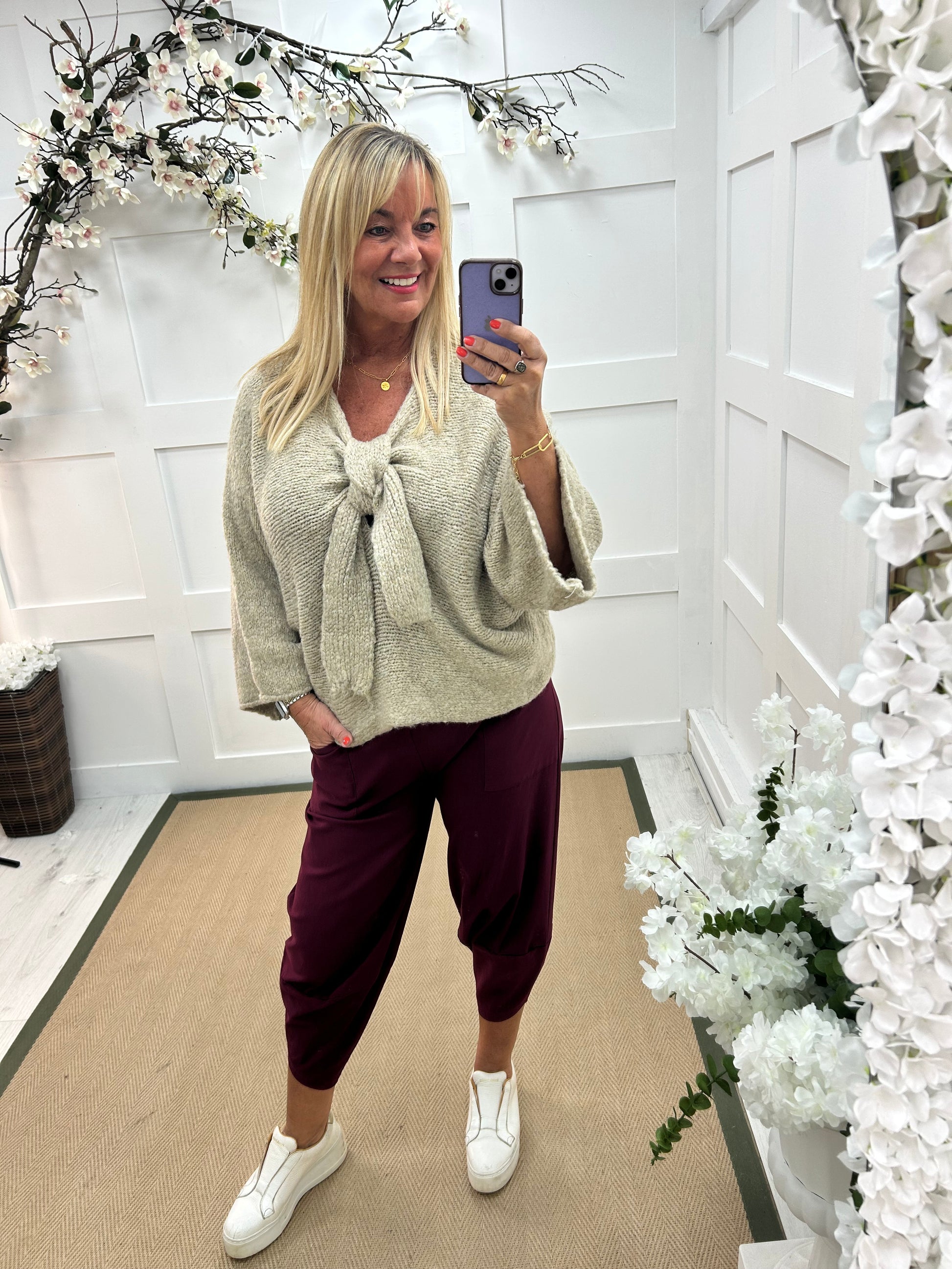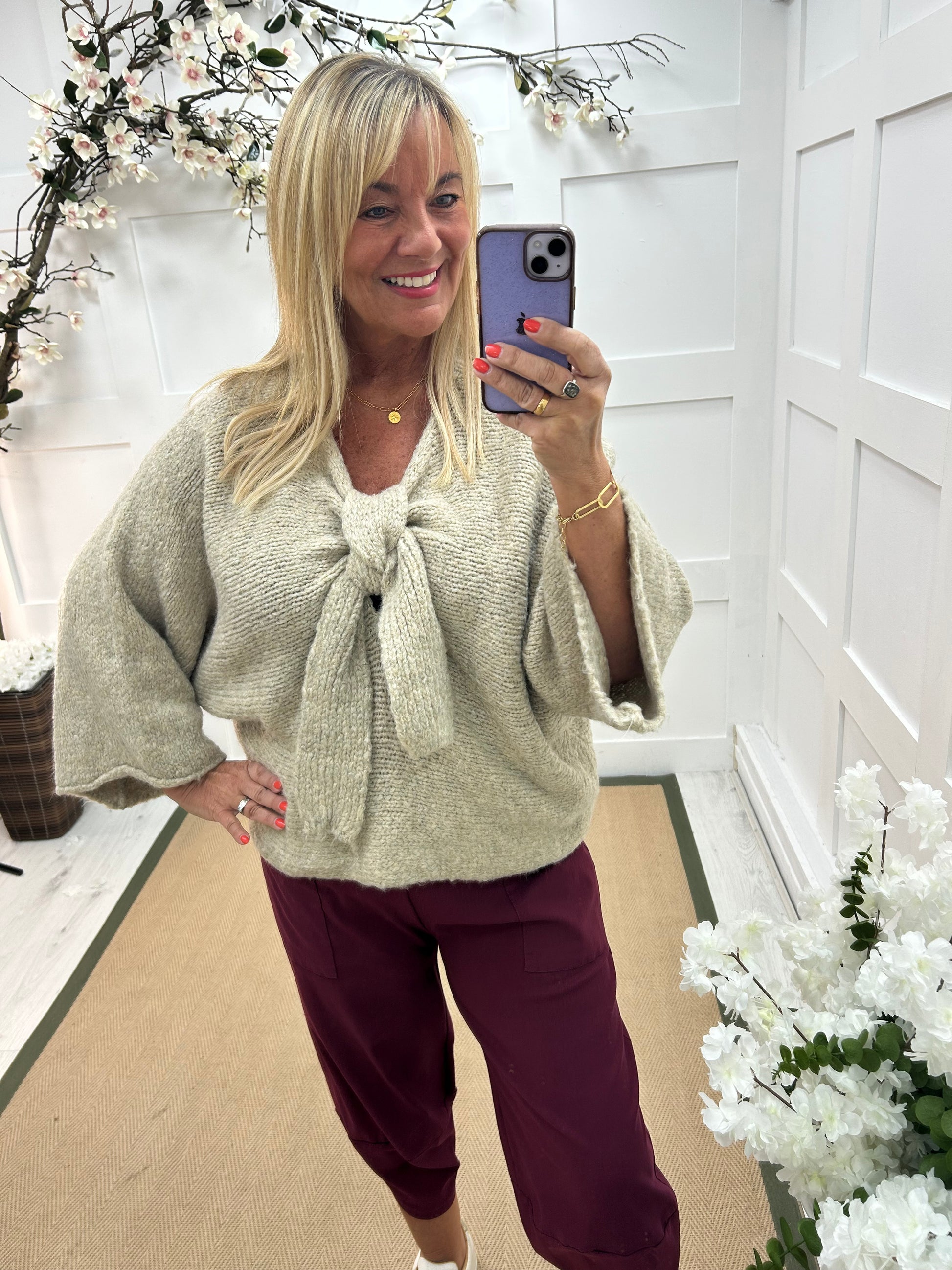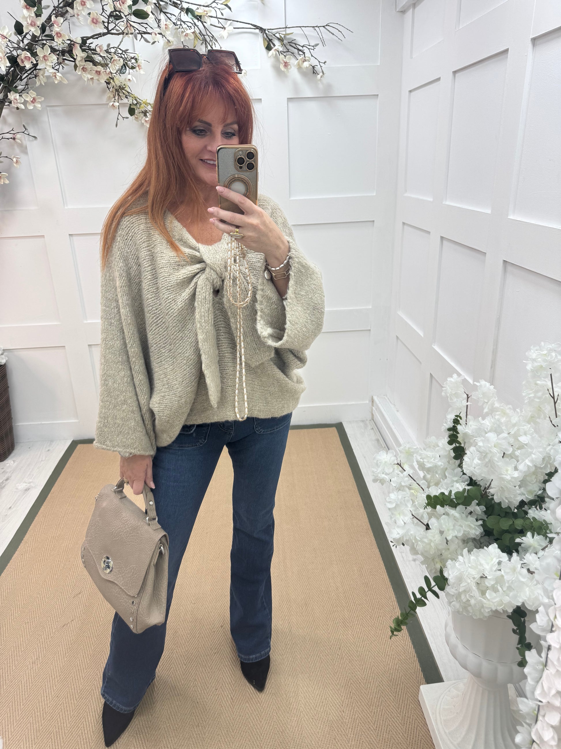 Bloom: Beige bow knitted jumper. One size: 12-18