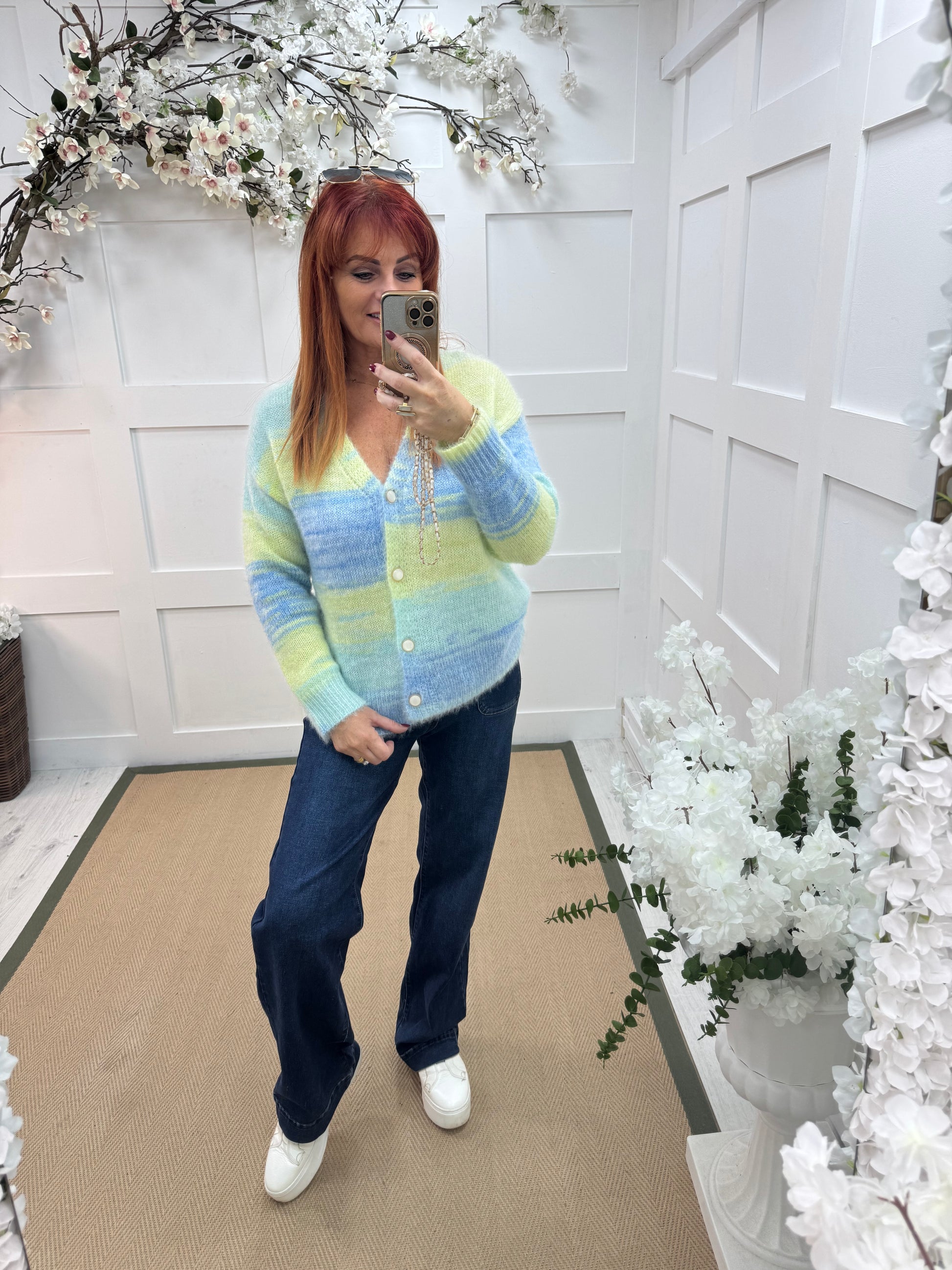 This Italian knit cardigan offers timeless elegance and everyday comfort. Designed with a V neck front, it layers effortlessly over any plain outfit. The cute knit with the striking stripes add a touch of sophistication. A versatile wardrobe staple, perfect for chic casual or smart layering.