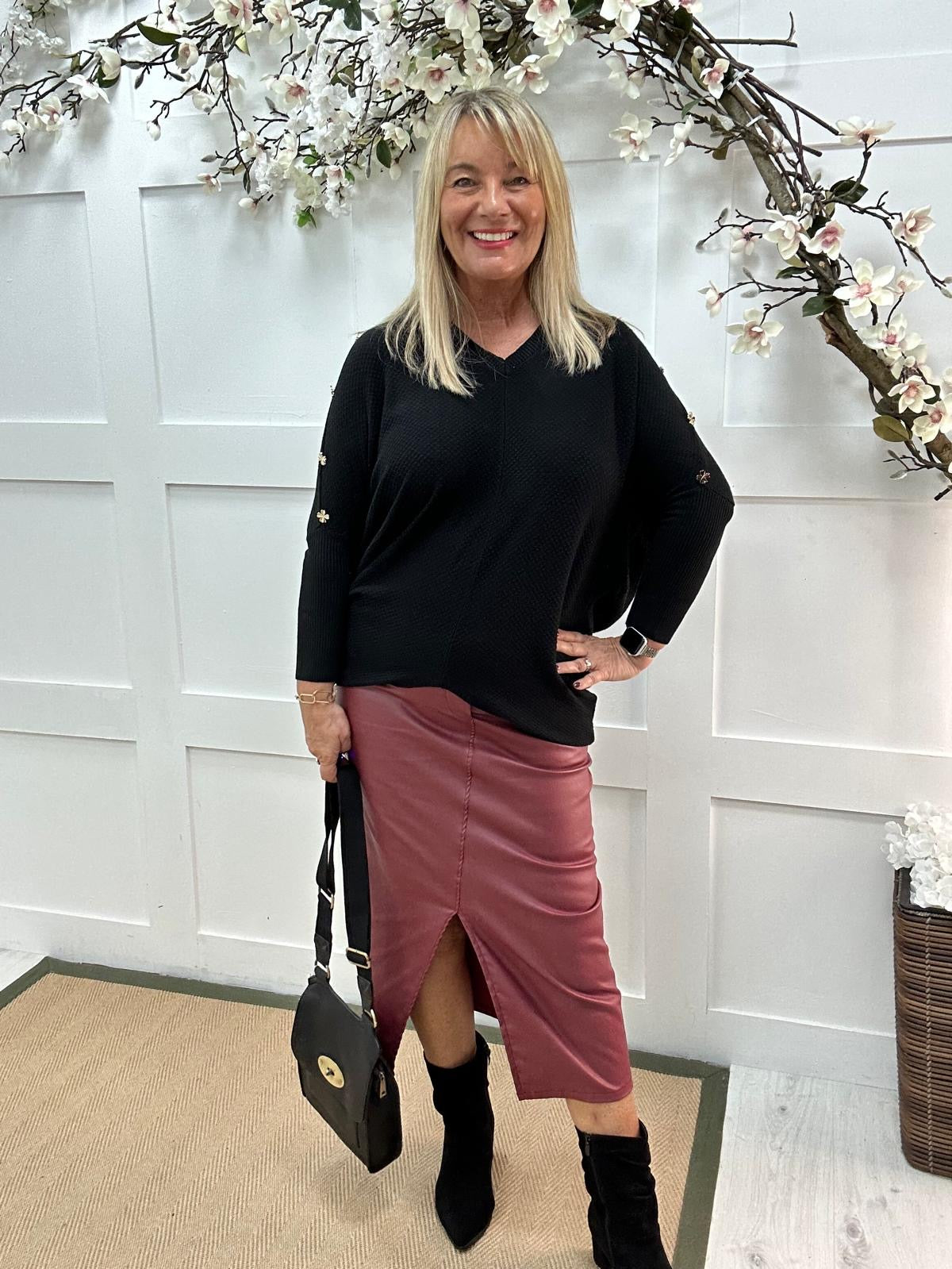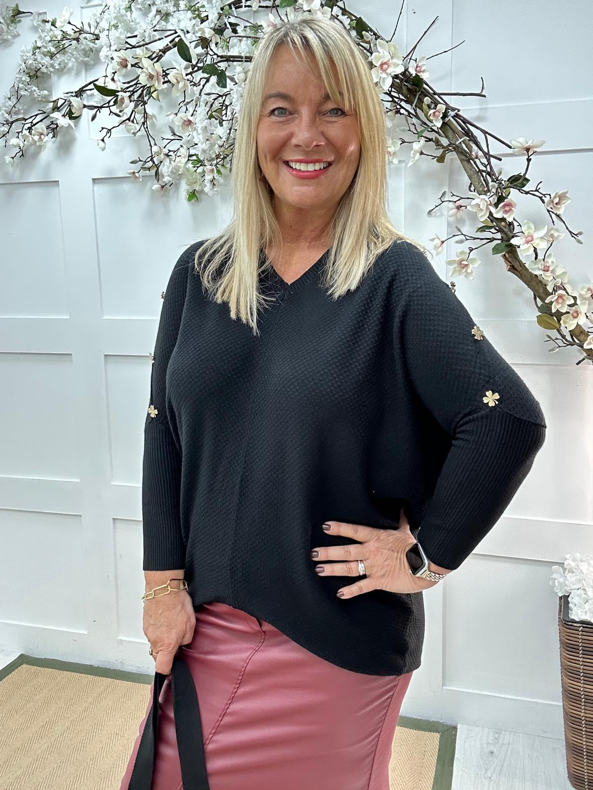 Bridie: Black clover button detailed waffle top. One size 14-20