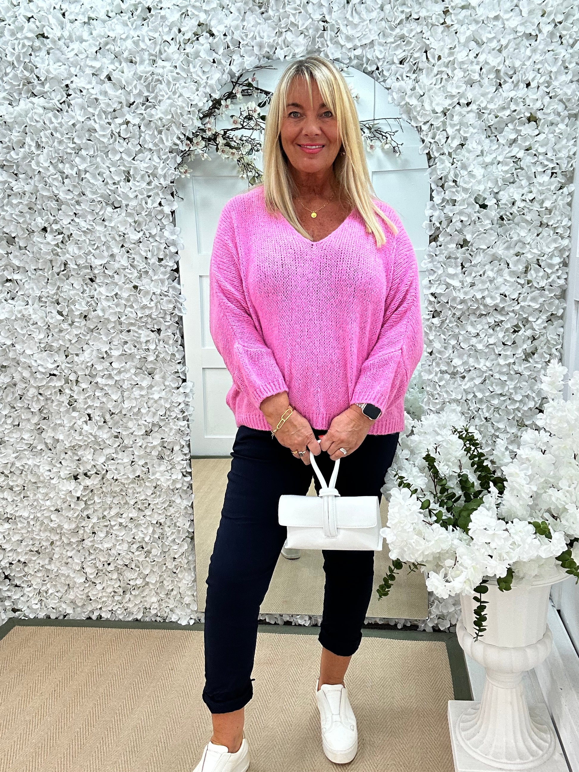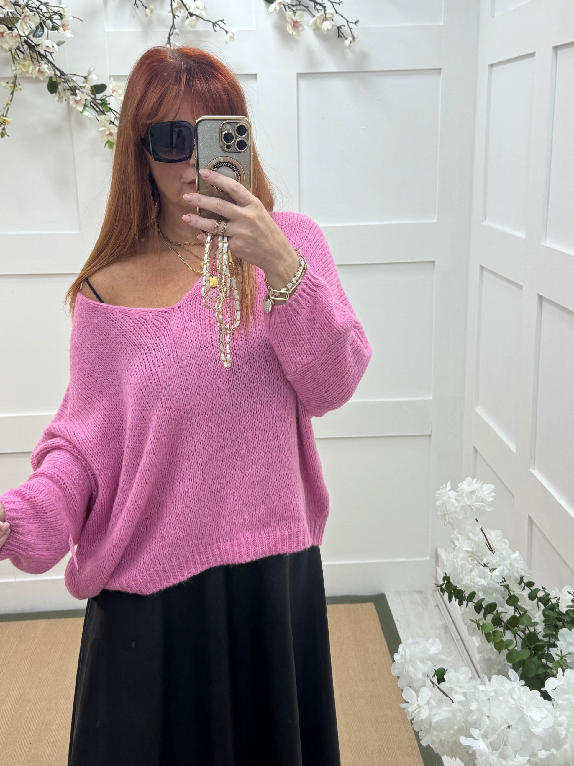 Alex: Bubblegum pink V neck knitted top. One size 14-20