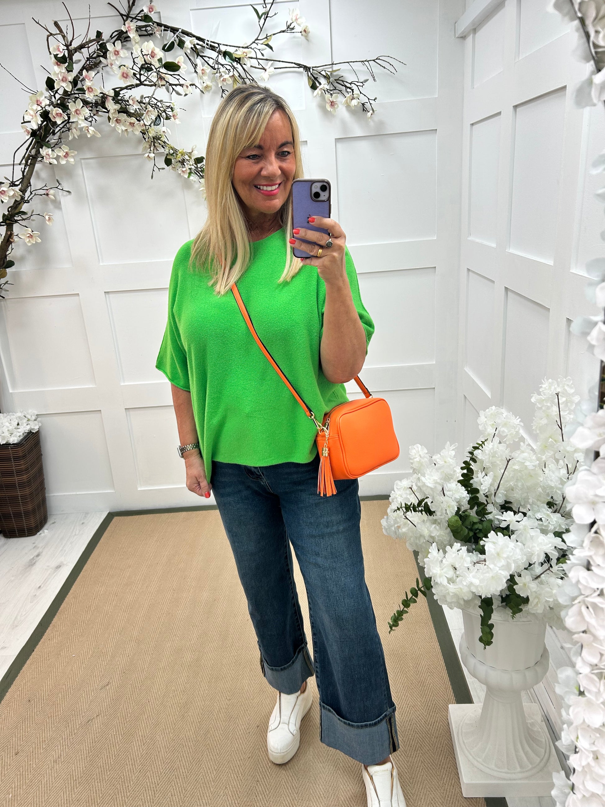 This mid weight, sand knit top features a relaxed, oversized fit with dropped shoulders and short sleeves. Perfect for layering, it offers a breezy, casual-chic vibe ideal for the cooler weather. The soft weave drapes beautifully, adding effortless elegance to any outfit. Style it with Trudy trousers for a fresh, autumn look.