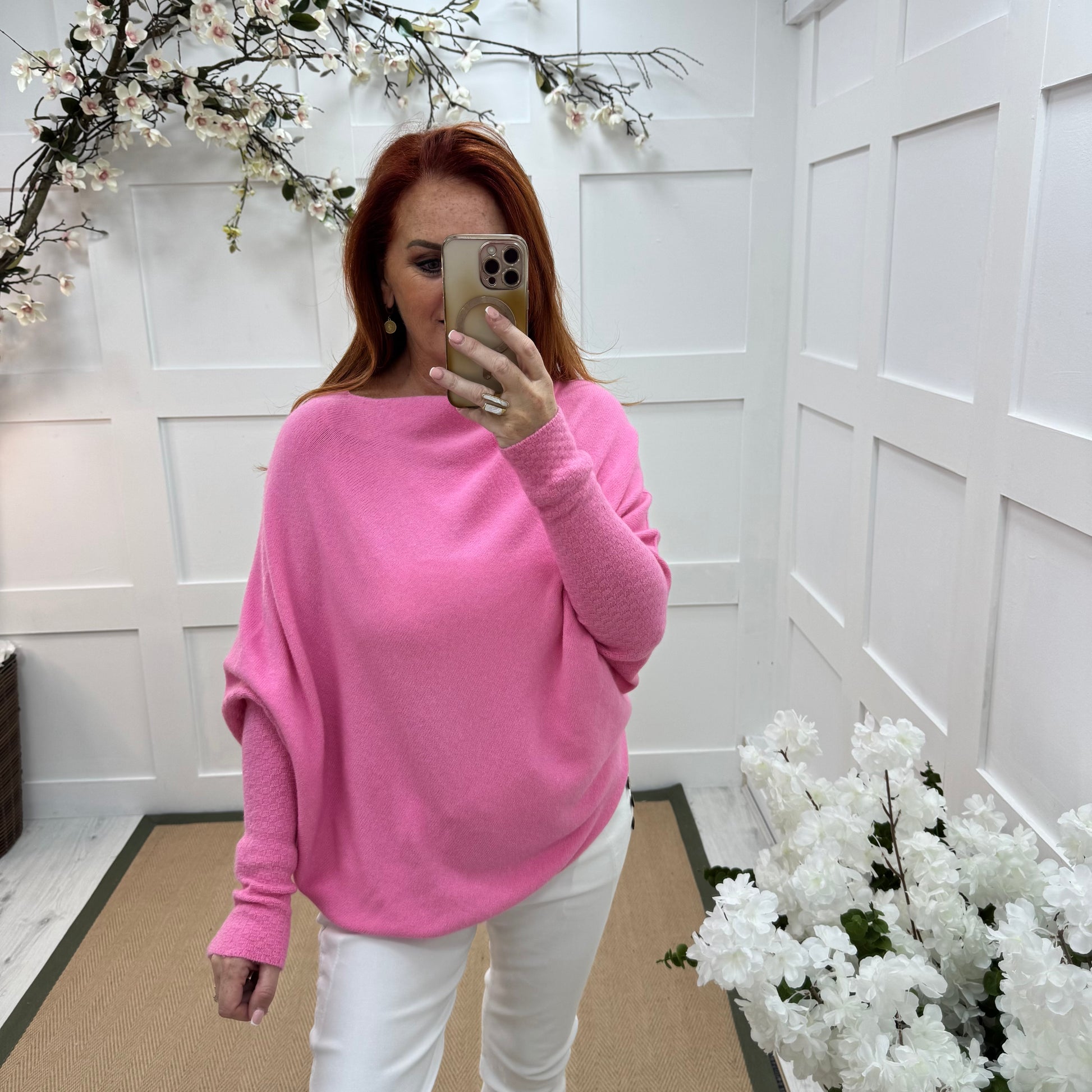 Erica: Pink asymmetrical slouch soft knit top. One size 10-18