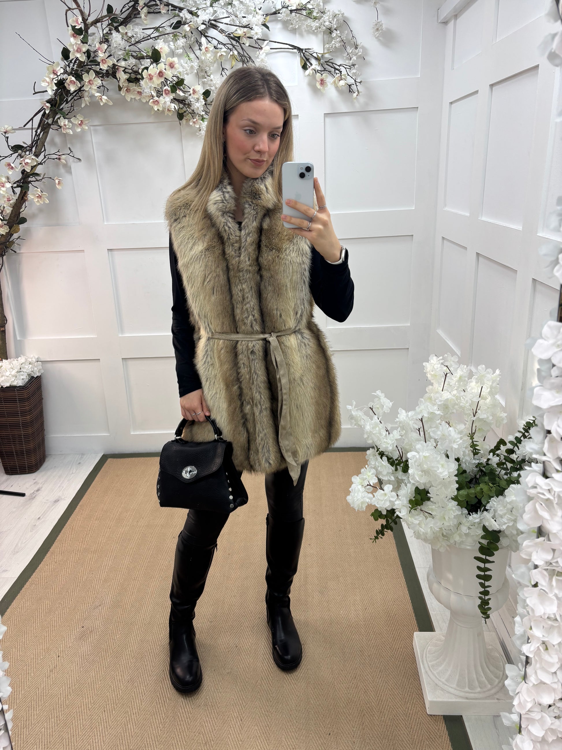 Kaya: Brown faux fur gilet. One size 10-16