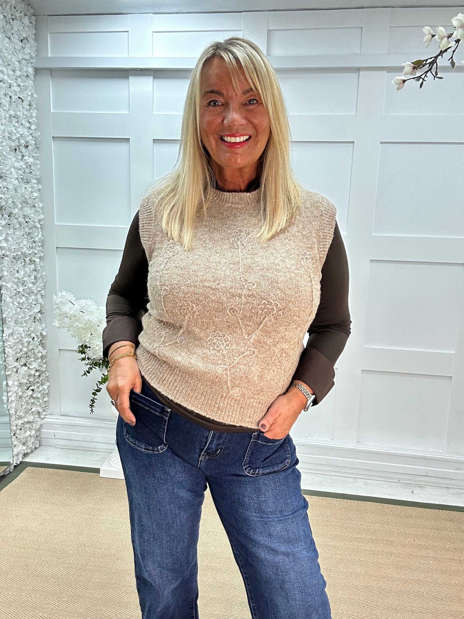 This stretchy knit tank top is effortlessly chic with its soft fabric and relaxed fit. Featuring a flower detail on, it blends comfort with understated elegance. Perfect for pairing with leather trousers & our Layla shirt, it’s a versatile piece for both casual and dressy looks.