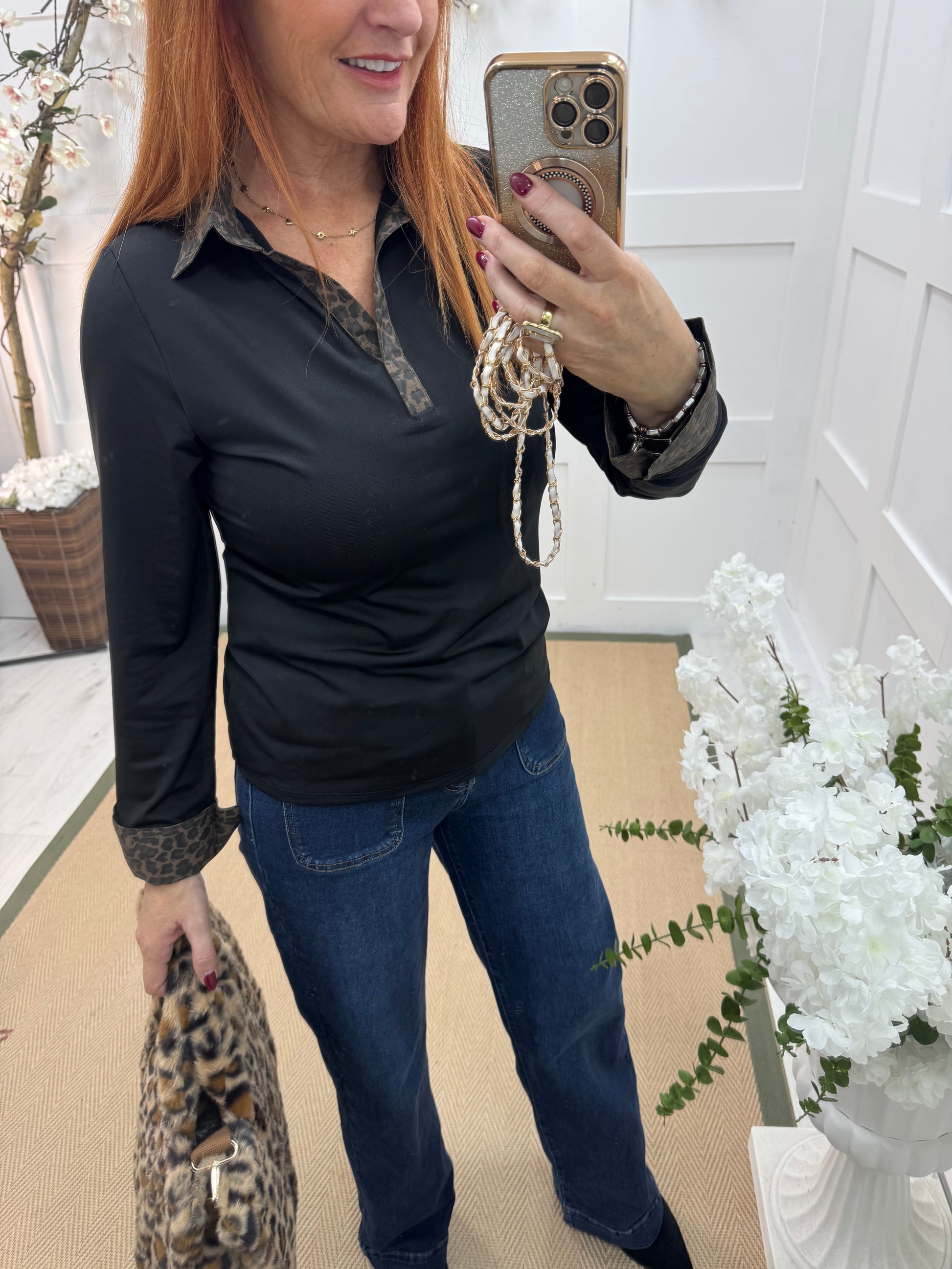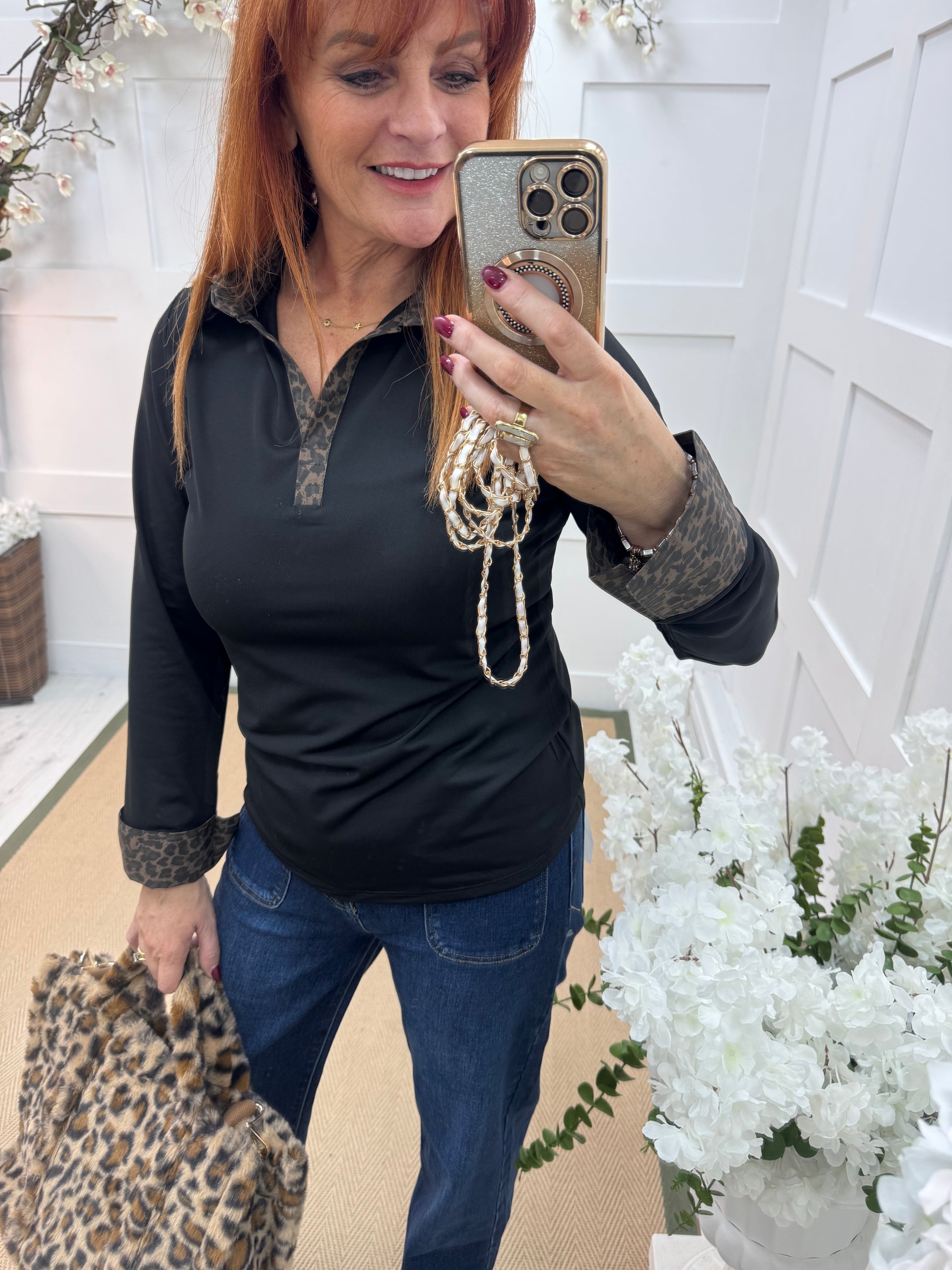 Layla: Leopard & black cotton layering shirt. 4 sizes