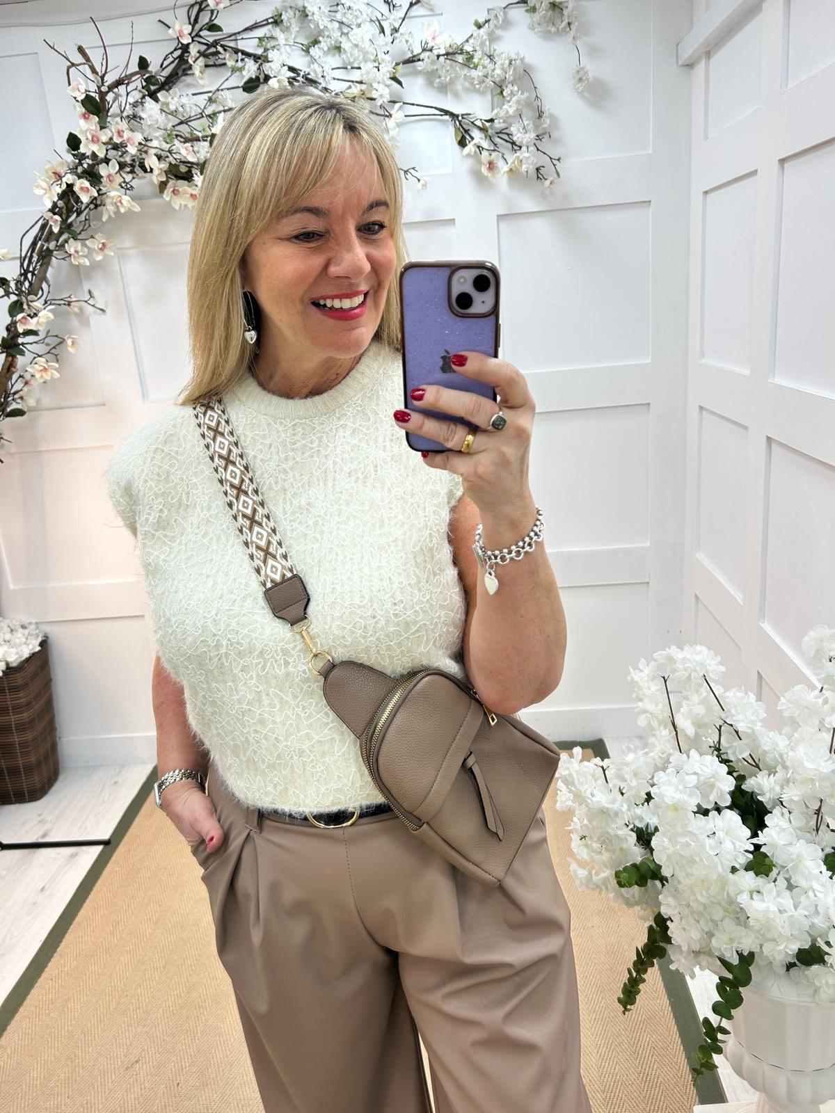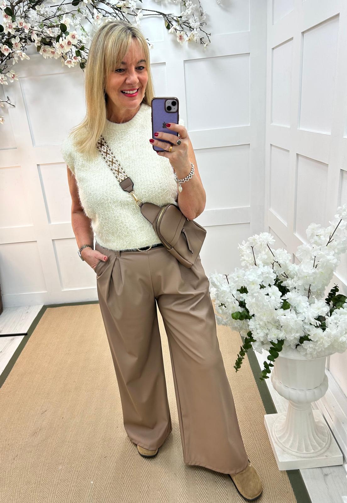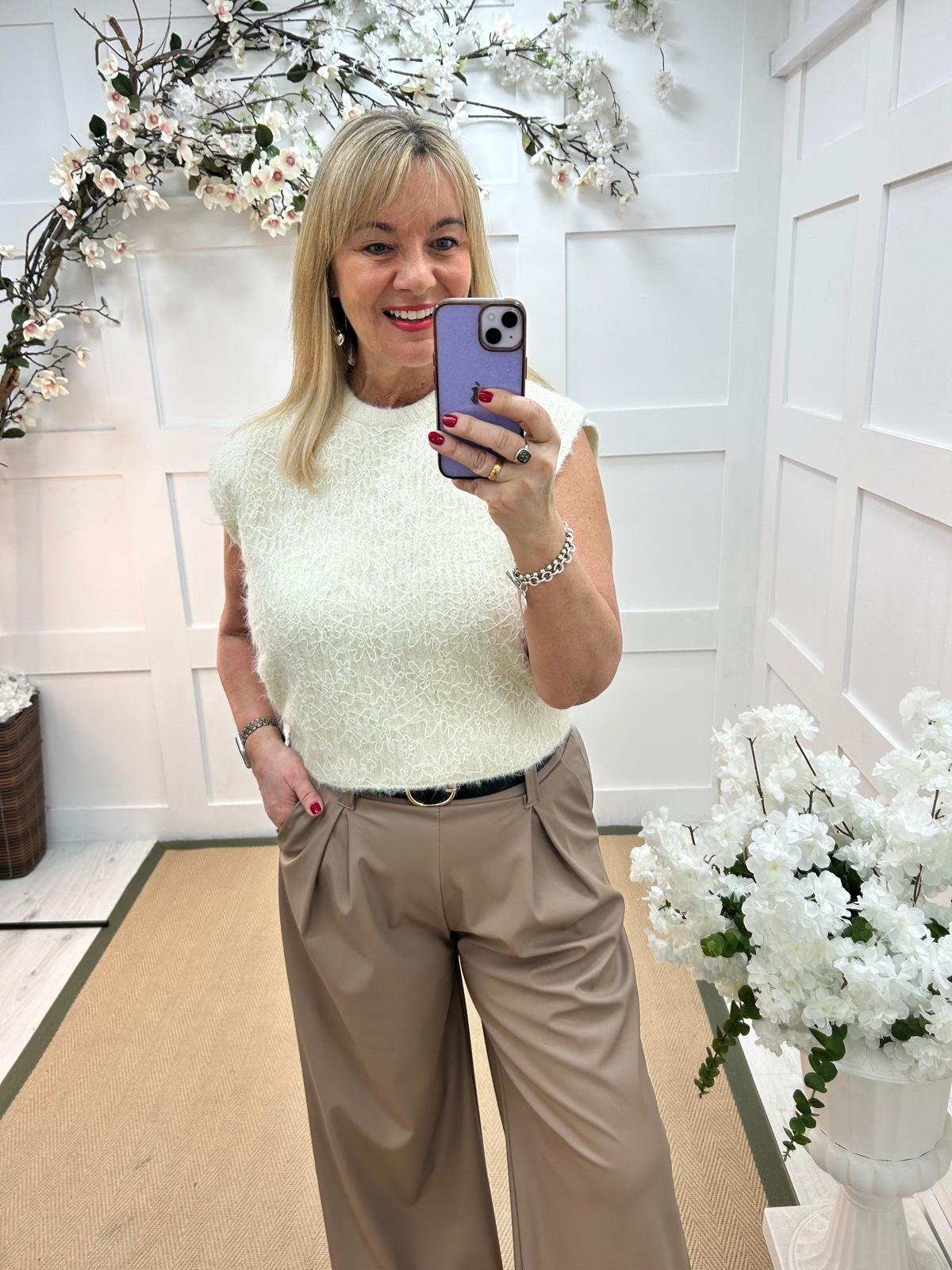 This stretchy knit tank top is effortlessly chic with its soft fabric and relaxed fit. Featuring a flower lace detail,it blends comfort with understated elegance. Perfect for pairing with leather trousers & our Layla shirt, it’s a versatile piece for both casual and dressy looks.