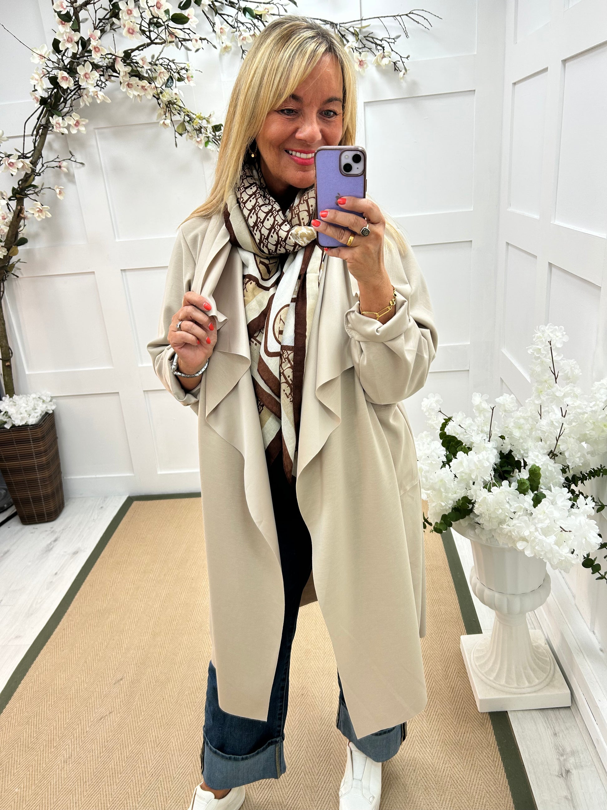 Marlowe: Cream waterfall coat with pockets. One size 14-20