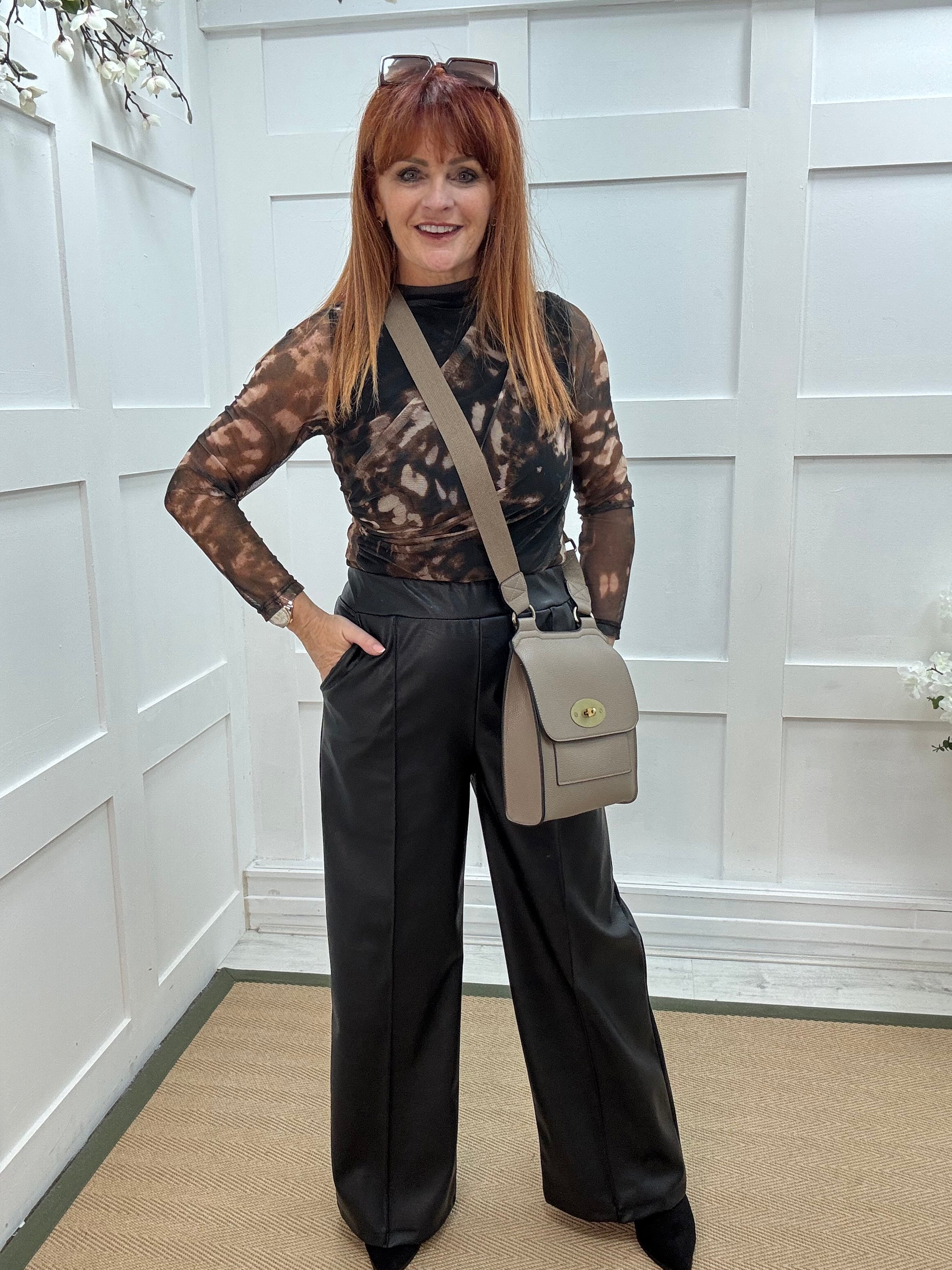 A trendy sheer mesh long-sleeve top that adds an edgy, modern touch to any outfit. Lightweight and breathable, it’s perfect for wearing as a statement piece with leather trousers. The fitted silhouette enhances its sleek appeal, making it a versatile piece for both casual and dressy looks.