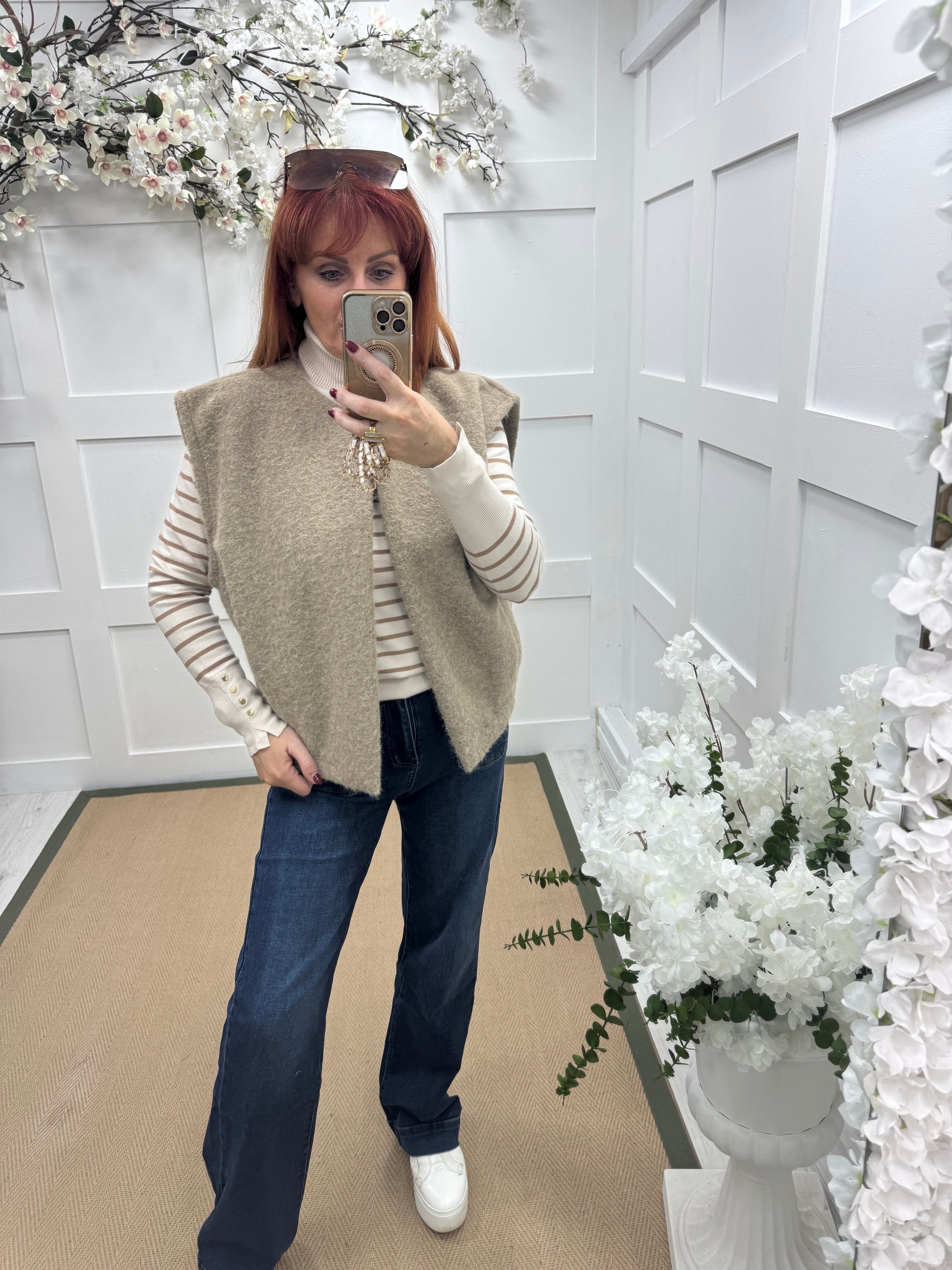 This burgundy chunky wool looking waistcoat is a mid weight, a great layer perfect for the cooler weather. It features a structured sleeveless fit, kick pleat side detail & side pockets. Ideal for layering over vests or dresses, it effortlessly adds a boho-chic touch to any outfit.