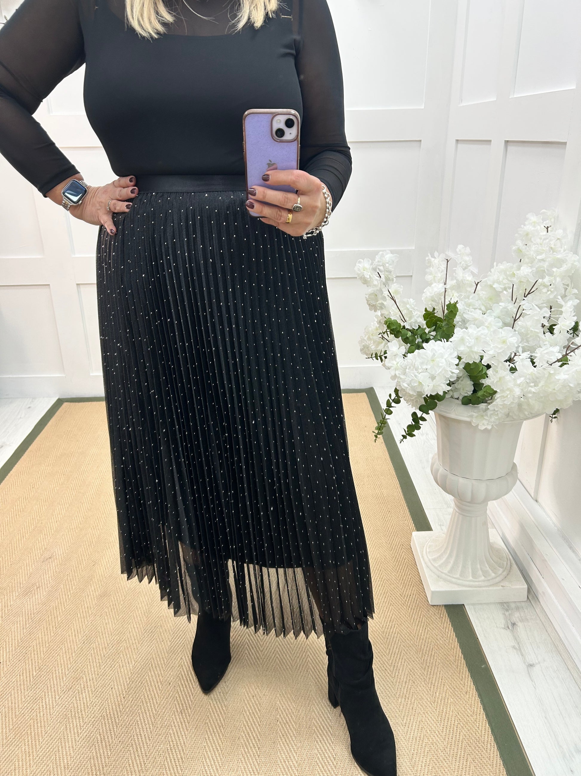 Natalie: Black diamanté maxi skirt. One size 12-16