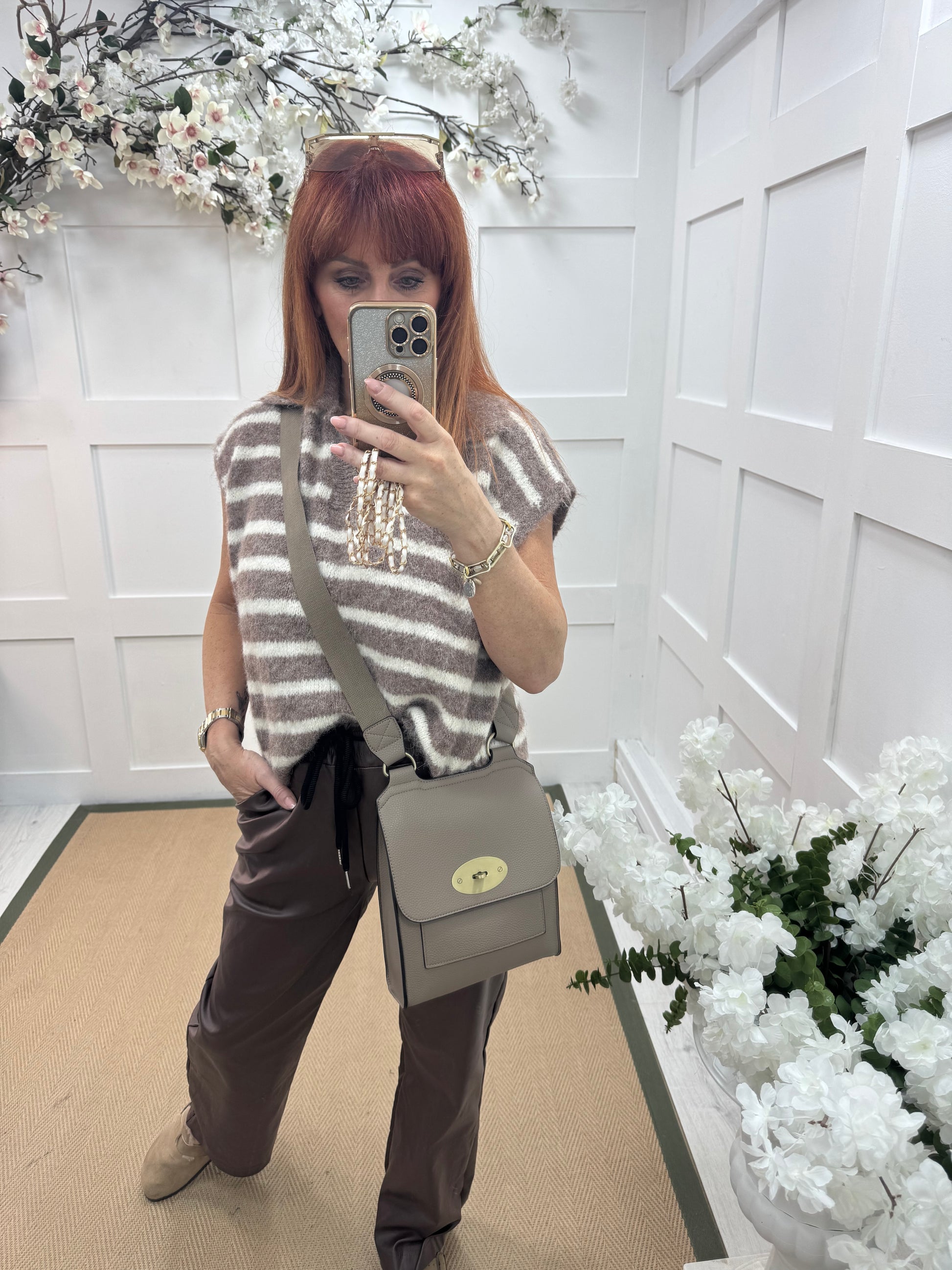 Sasha: Mocha cross body satchel bag