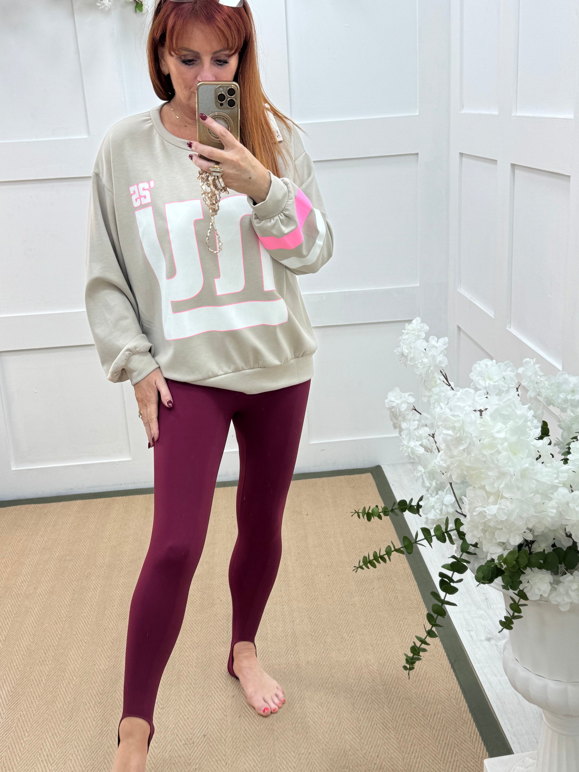 Dark burgundy high-waisted energy leggings are ultra-soft, warm, and super stylish. Featuring a stirrup under foot design, they provide a cozy yet breathable fit. The high waistband offers a flattering, secure feel, team up with a cosy knitted jumper. Perfect for casual wear, lounging, or layering in winter.