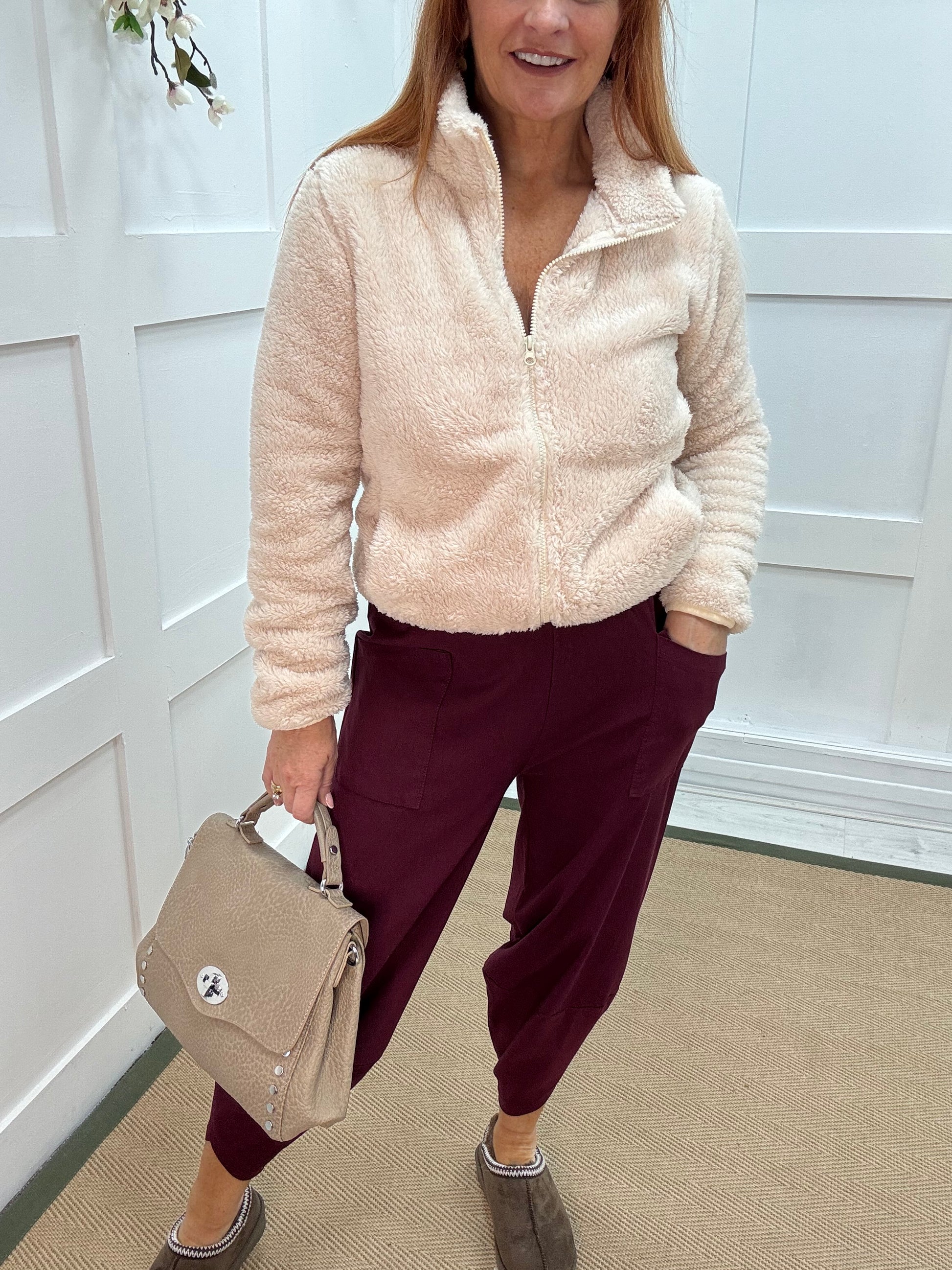 Taylor: Burgundy cocoon harem trousers. One Sz: 10-16