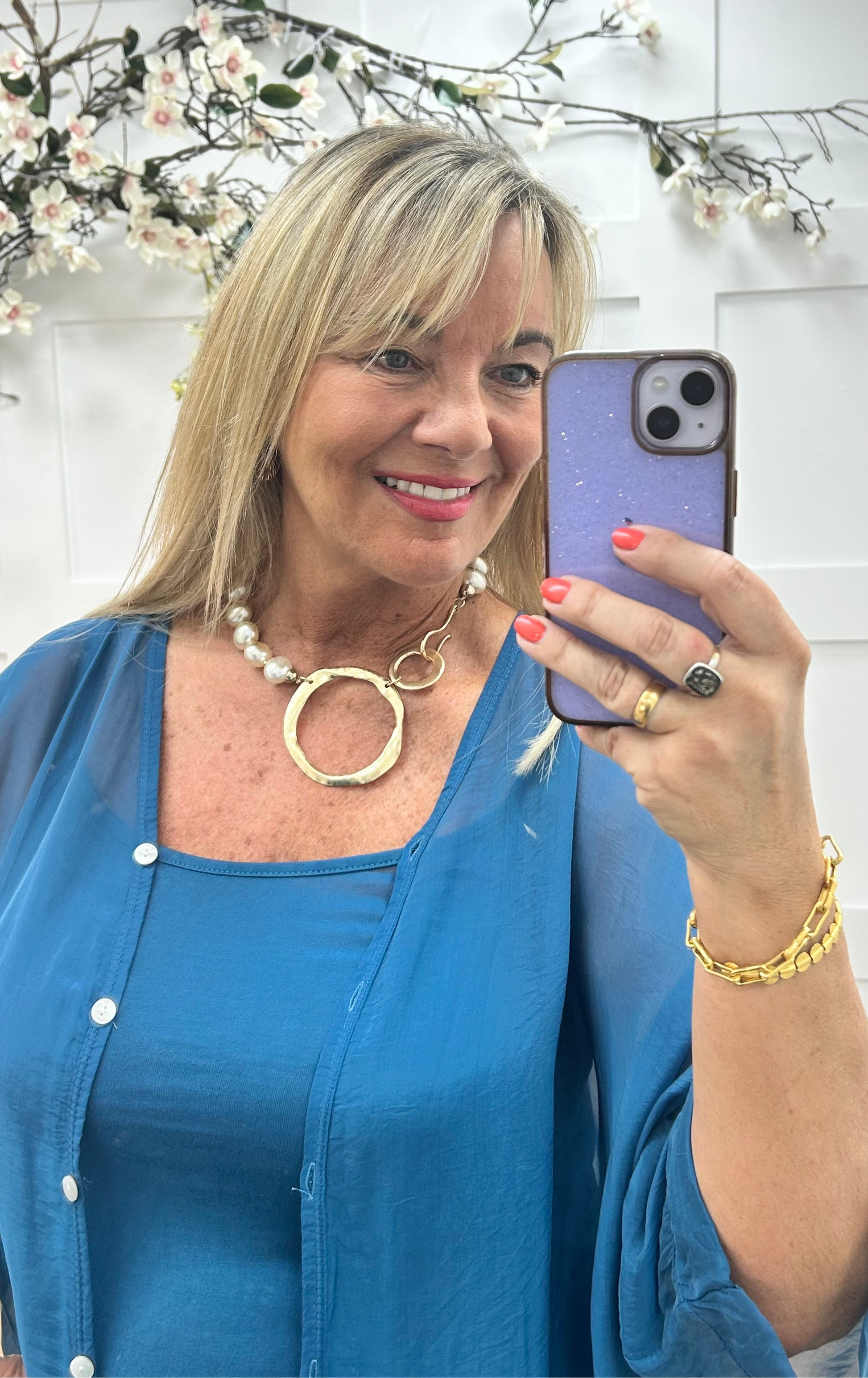 This elegant V-neck long sleeve silk top is button-through and comes with a matching vest for versatile styling. Made in Italy, it can be worn open for a relaxed look or tied in a knot for chic flair. Lightweight and luxurious, it’s the perfect blend of sophistication and comfort for any occasion making it a wardrobe essential that seamlessly combines elegance, practicality, and effortless Italian style.